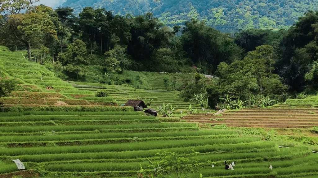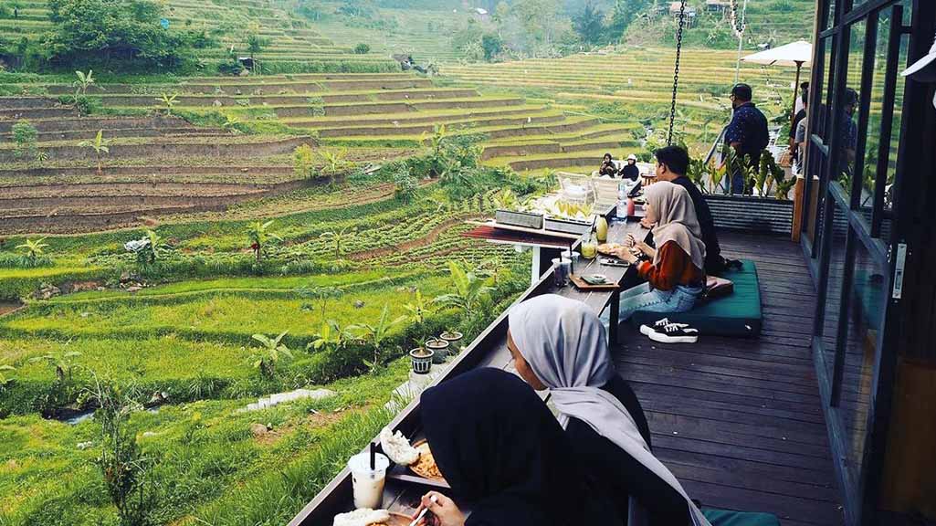 Di kota mah susah cari tempat kayak gini, apalagi viewnya juga mantap banget, sawah berundaknya cakep banget kayak di Bali, warna hijau yang bikin mata sehat, pastinya bikin betah banget nongkrong dan healing di cafe TerasTapak ini.